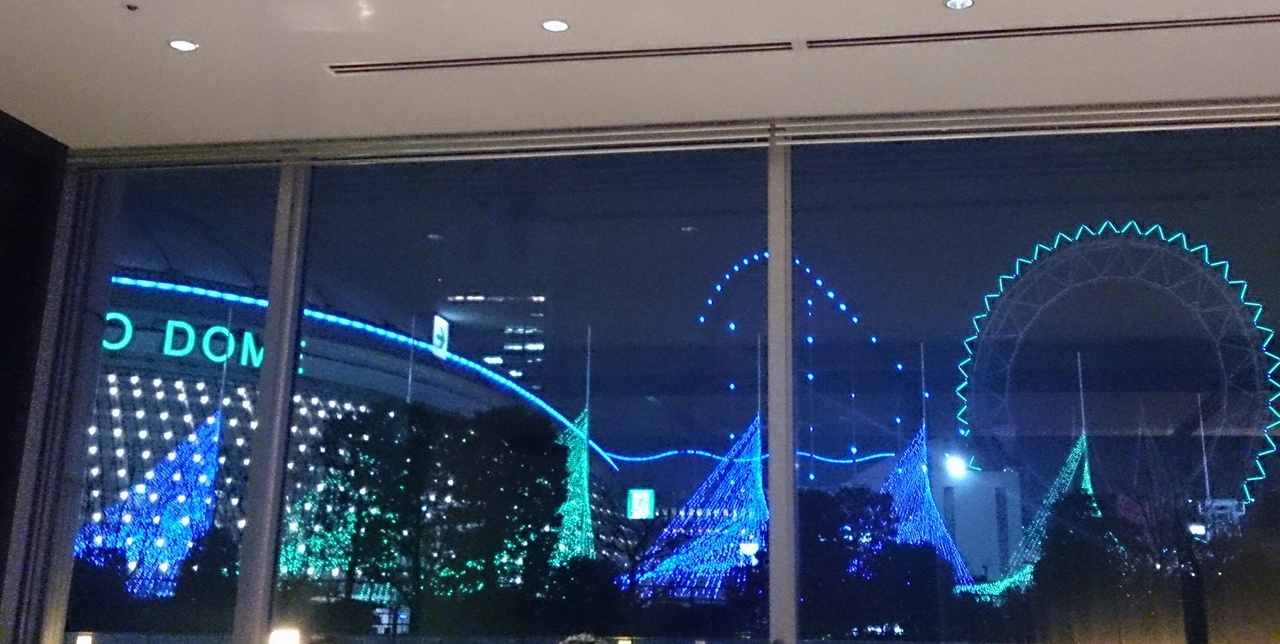 ディナーで行ったのですが、ライトアップされているドームや遊園地が見える席でよかったです。