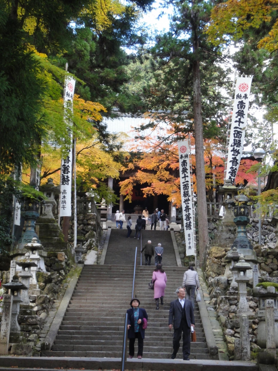 かなり長い階段を上って本殿へ。紅葉はちょうど見ごろでとても綺麗でした。