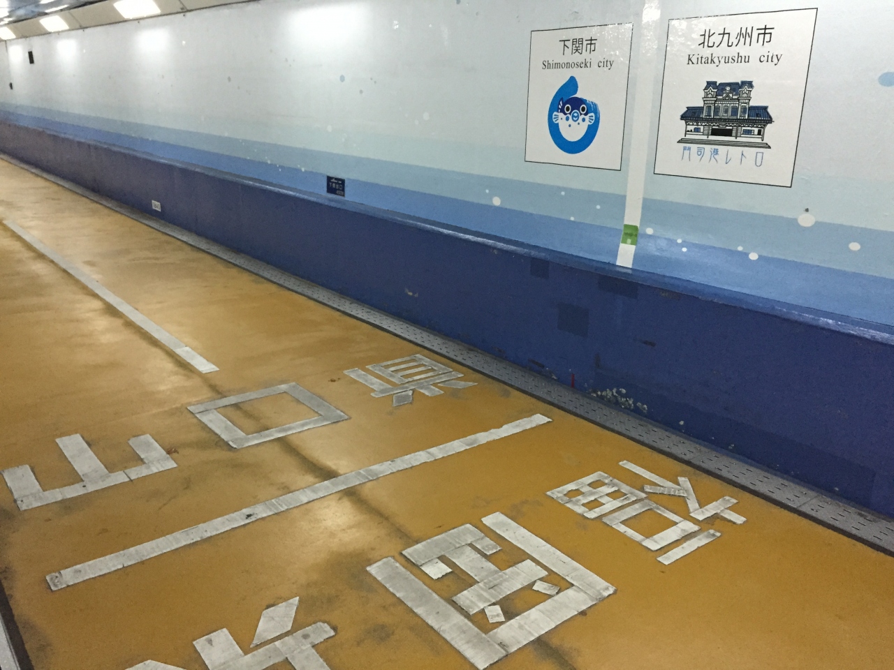 全長870mのトンネルをひたすら進むだけですが、北九州市(福岡/九州)と下関市(山口/本州)の市境では、ちょっとテンションが上がります。