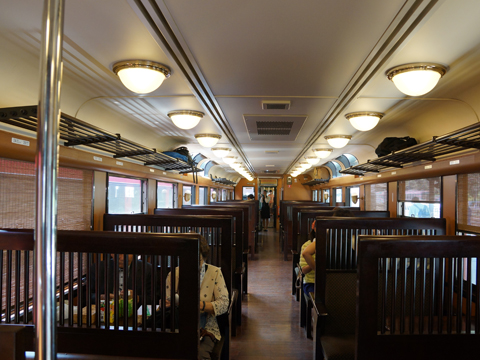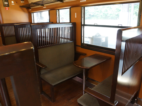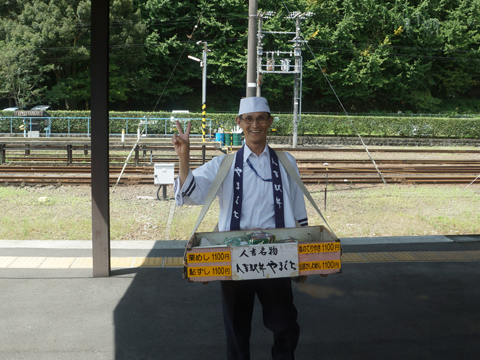 雰囲気のある車内で、人吉駅でかった駅弁をたべながら