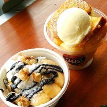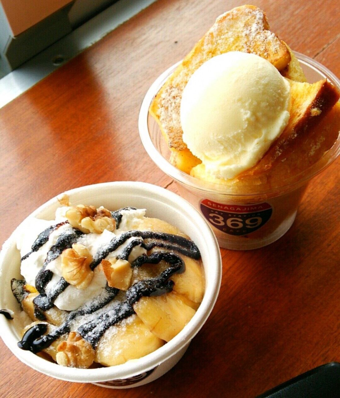 平日のオープン直後で貸し切りでした!テラス席から飛行機と青い海を見ながらのんびりいただきました。オーダーしてから5分くらいで出てきました。甘そうに見えますが、重たくもなく意外にもペロッといけちゃいます!
