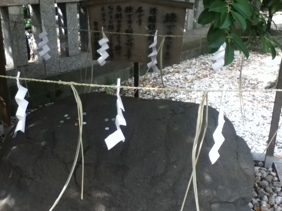 地下鉄後楽園駅の西、安藤坂の東の北野神社にある。細い急な石段を上がっていくと北野神社の境内があり、左側の拝殿の手前にこちらの牛石がある。牛石は、言われてみれば、牛のような形状の自然石である。週末午後のせいか、7、8人程度が参拝に来ていて、こちらの牛石も見ていた。源頼朝が東征への途中、ここで休んだ時、夢の中に牛に乗った菅原道真が現れ、願いが叶うことを告げられ、その後、ここにあった牛に似た石を御神体としたことから、この牛石を撫でると願いが叶うと言われている。北野神社の参拝の際、併せて見ることをお勧めする。
