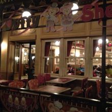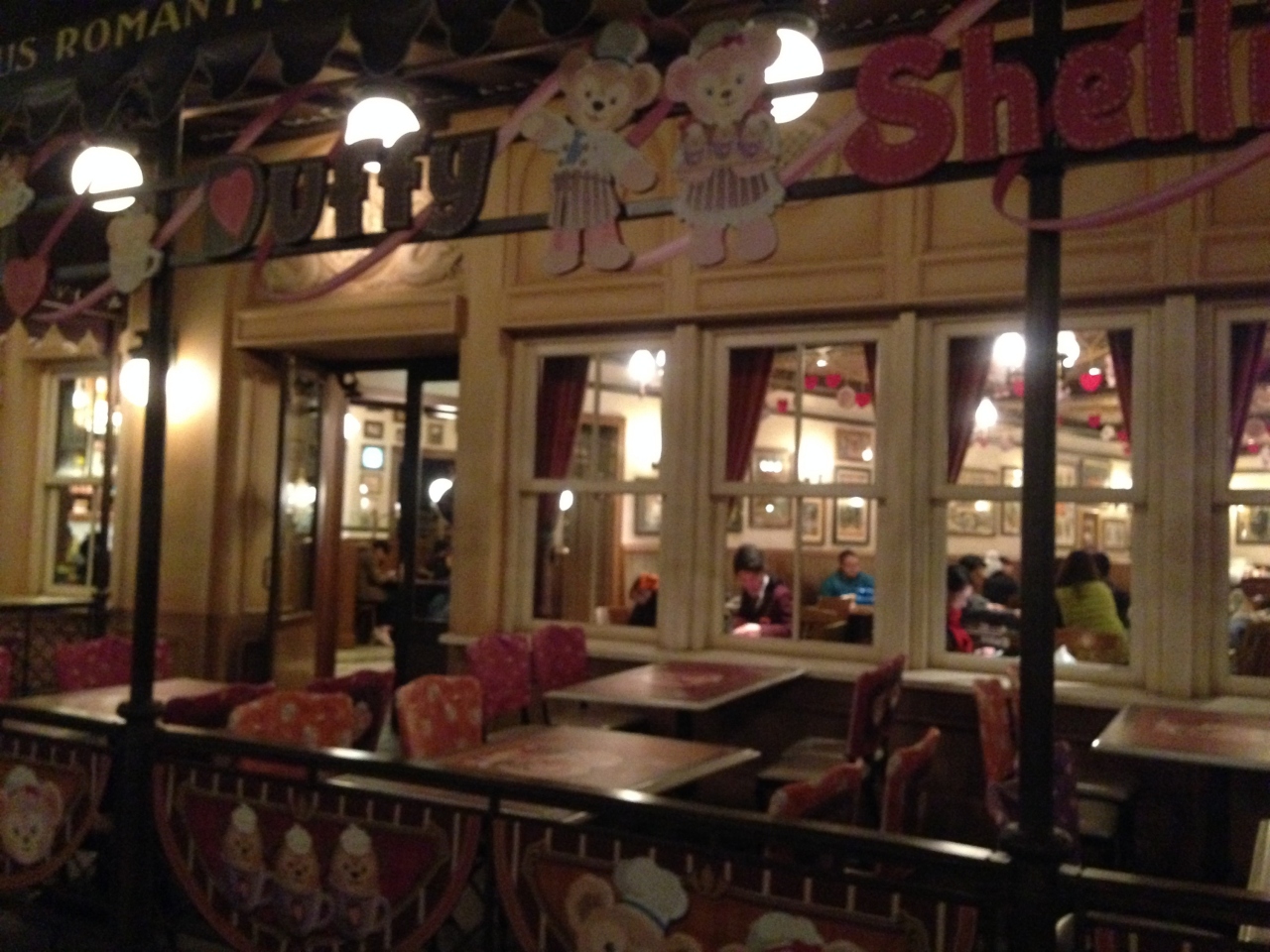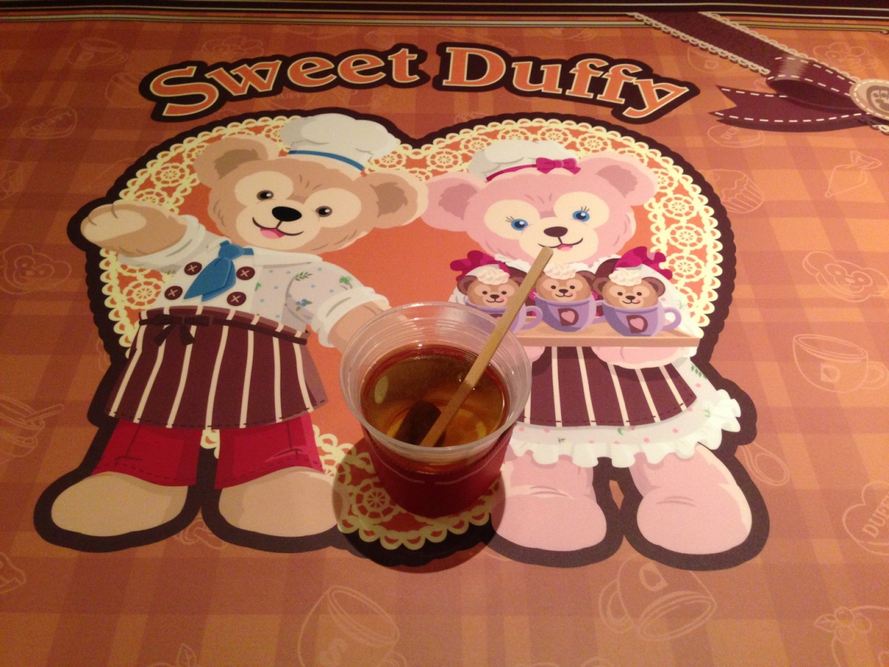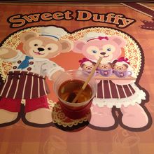 Sweet Duffy期間中だったので、店外の壁や店内の内装、テーブルに至るまでSweet Duffy仕様になっていました。