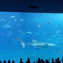 優雅に泳ぎ回るジンベイザメは格別でした!水槽の上を見学出来たり、ショーも最初から最後までおもしろく飽きさせませんでした。ジンベイザメの水槽の隣にはカフェがあり、コーヒーを飲みながらジンベイザメの泳ぐ姿を見ることができました。
