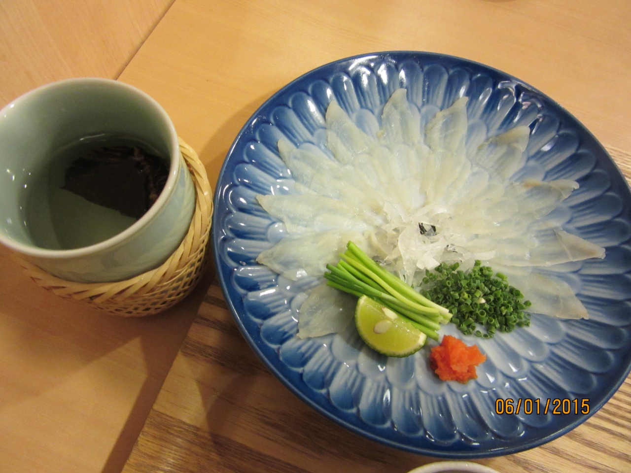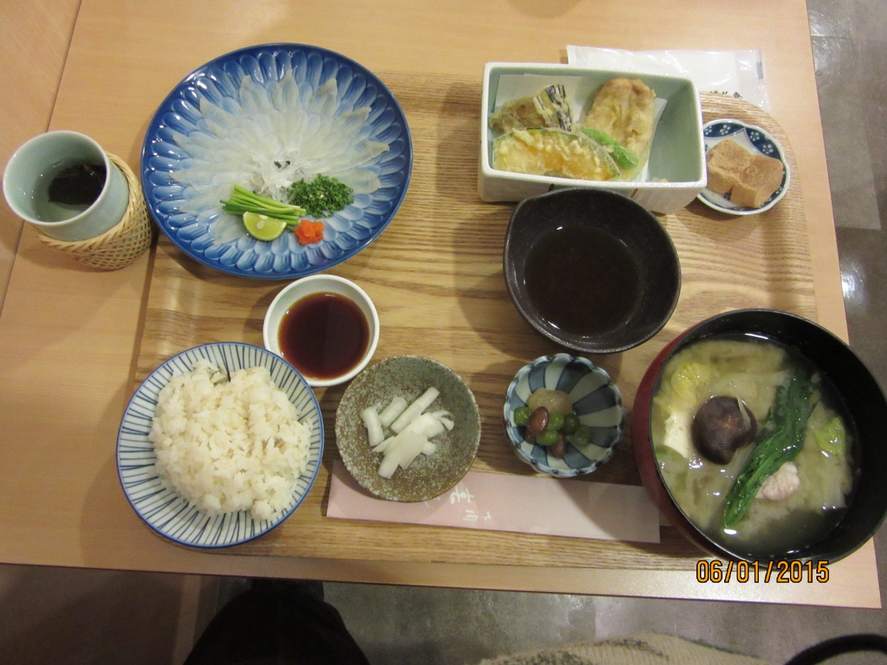 ランチの【ふぐ御膳 2,160円とふぐひれ酒864円=3,024円】を注文。