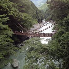 徳島県の山奥、祖谷という地区にある有名な橋です。実際に「シラクチカズラ」という植物を編んで橋を作っているそうで、数年に1度新しいものに付け替えているそうです。(渡る前にそれを聞いたので少し緊張しました)