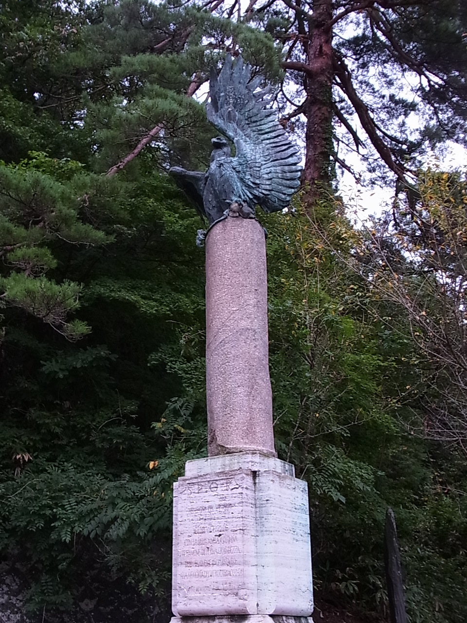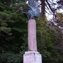 白虎隊士の墓の近くに、鷹が頂点に模された碑が建っています。
