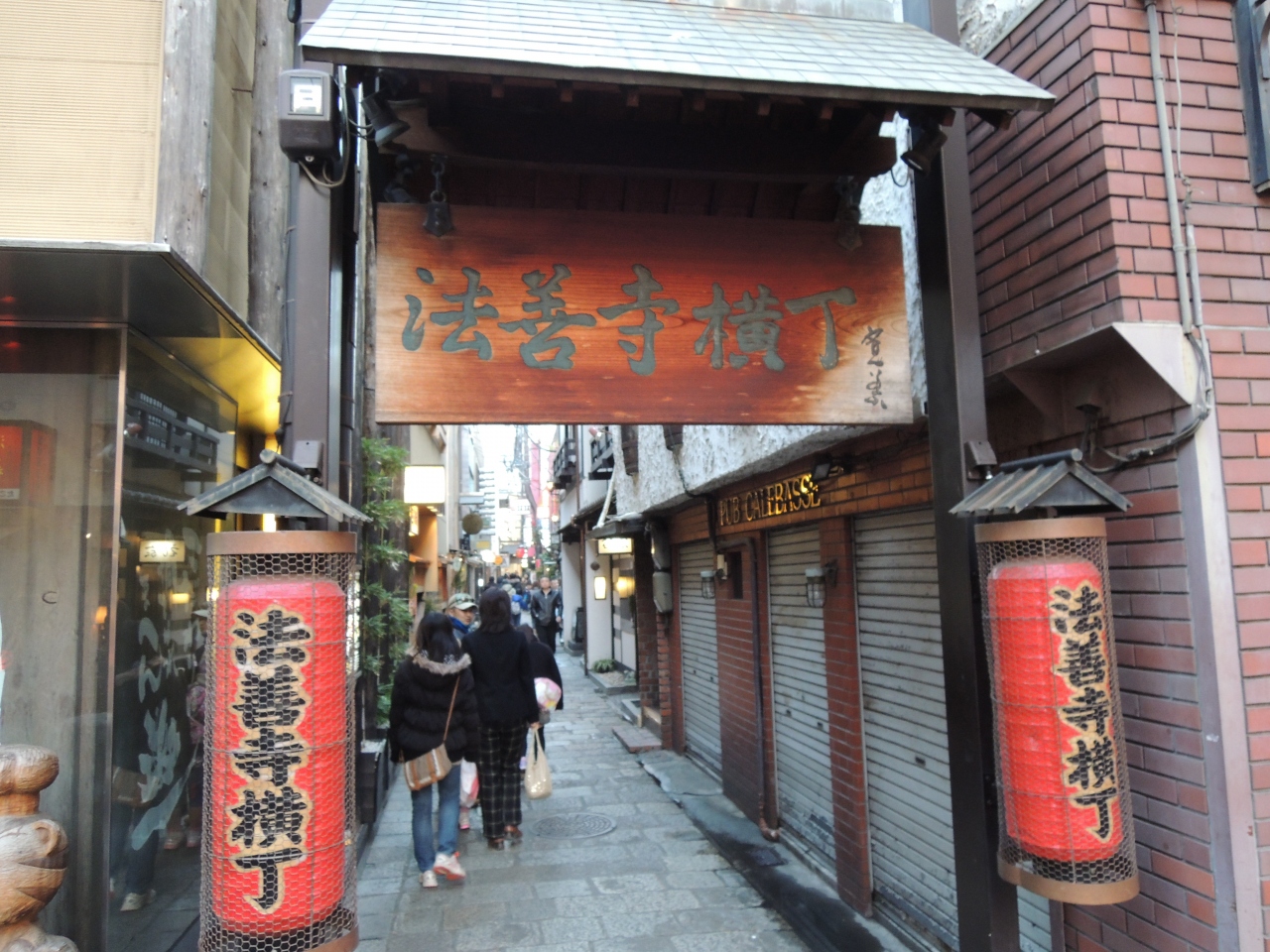繁華街中に雰囲気のある情緒豊かな法善寺横丁はとくに水掛不動様辺りは人が多く集まっています。そのコケにびっしりと覆われた不動様は初めてみた時は衝撃的でした。