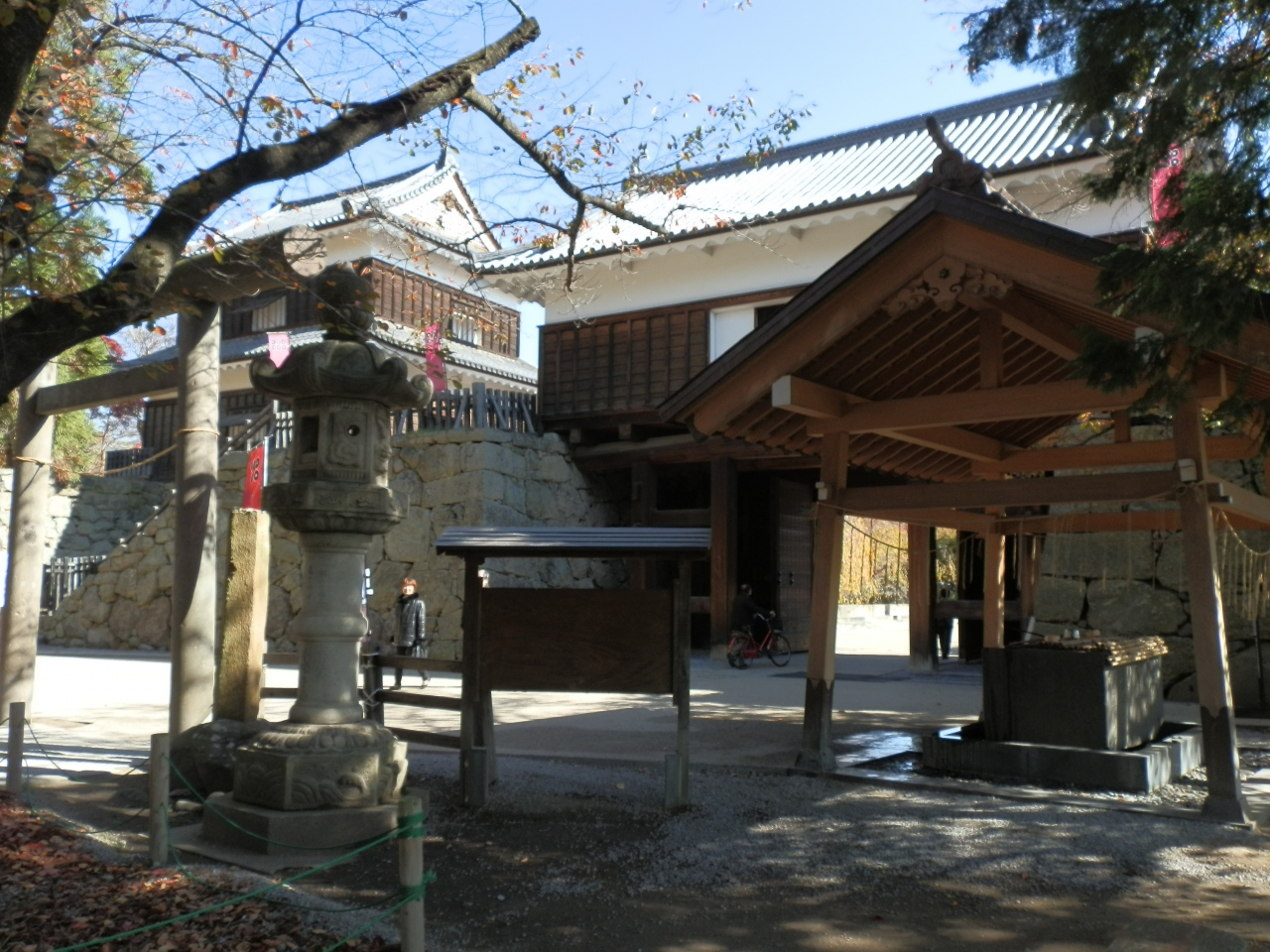 東虎口櫓門を入ると手水場がある。身を浄め、鳥居をくぐる。正面に「真田神社」が見える。神社内の中央部の鴨居に真田幸村公の肖像画がある。左手に眞田神社社務所があり、御札・お守り などを売っていた。