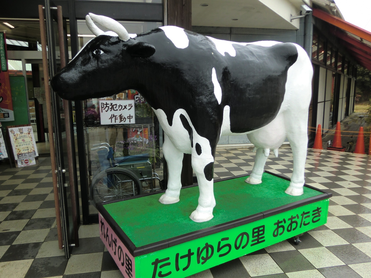 「道の駅たけゆらの里おおたき」さんに立ち寄りました。店頭に可愛い?牛が居ましたので牛乳を購入して飲んでみました。普段の牛乳より美味しく感じました。他にも生産者の名前入りの地場野菜も売っていました。筍のシーズンには美味しい筍も購入出来るそうです。