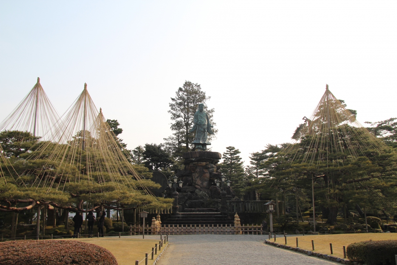 兼六園内の曲水がU字型に流れる内側の部分が千歳台と呼ばれています。明治紀念之標、根上松など見どころも豊富です。やや広い空間もあり記念写真を撮るにも適したところです。曲水に架かる千歳橋から千歳台と命名されたそうです。