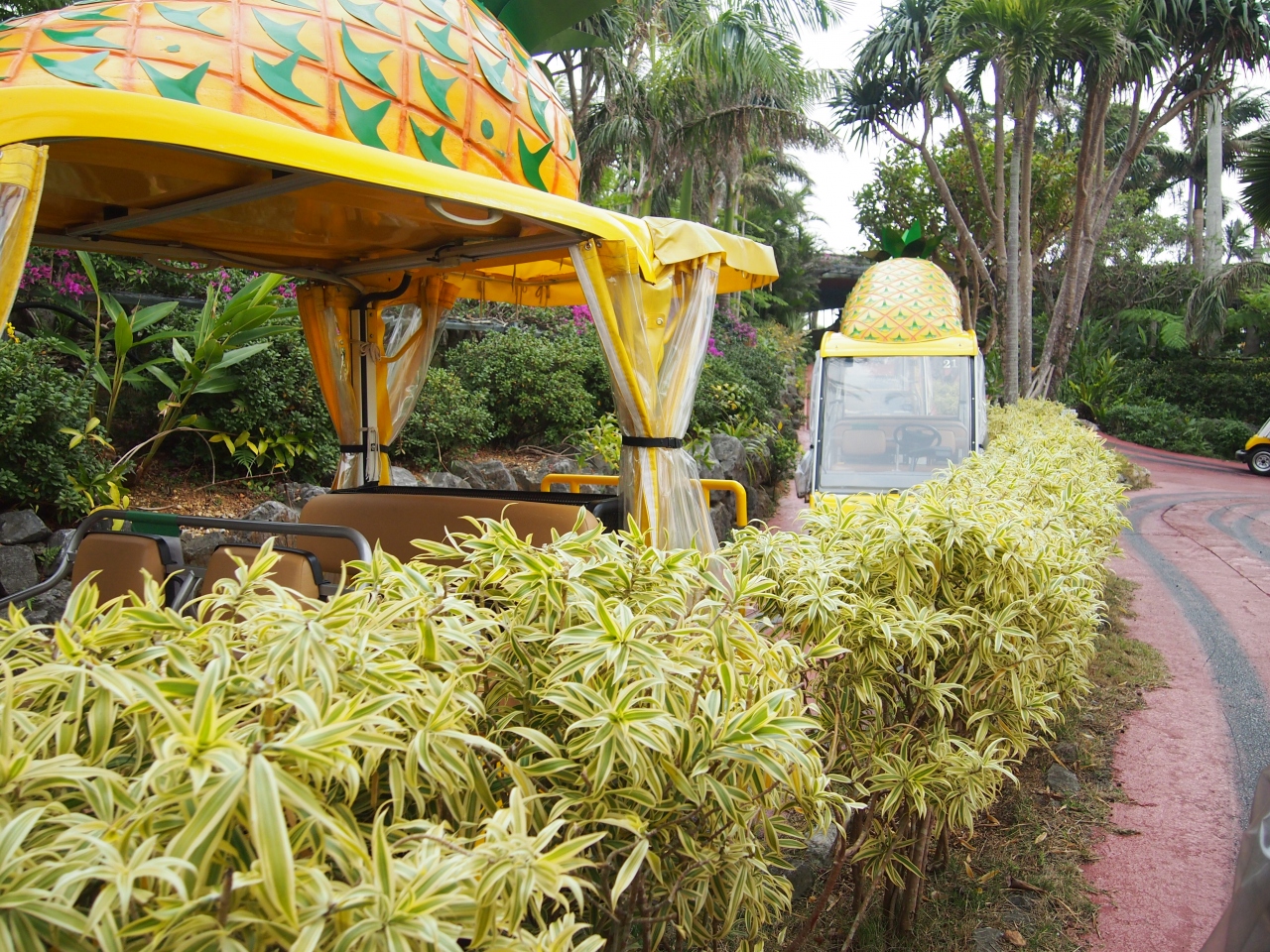 自動運転のカートに乗って、パイン畑の中を一周し、貝殻の展示物を見た後は、お土産コーナーを回るという流れです。お土産コーナーの中にパイナップル食べ放題のコーナーがありますが、夏に行った際は、甘いパインでしたが、真冬に訪れた、今回は酸っぱ過ぎて食べれたもんじゃありませんでした。お土産こーなには試食が沢山あり、試食しながらお土産を見るのが好きという方は楽しめると思います。
