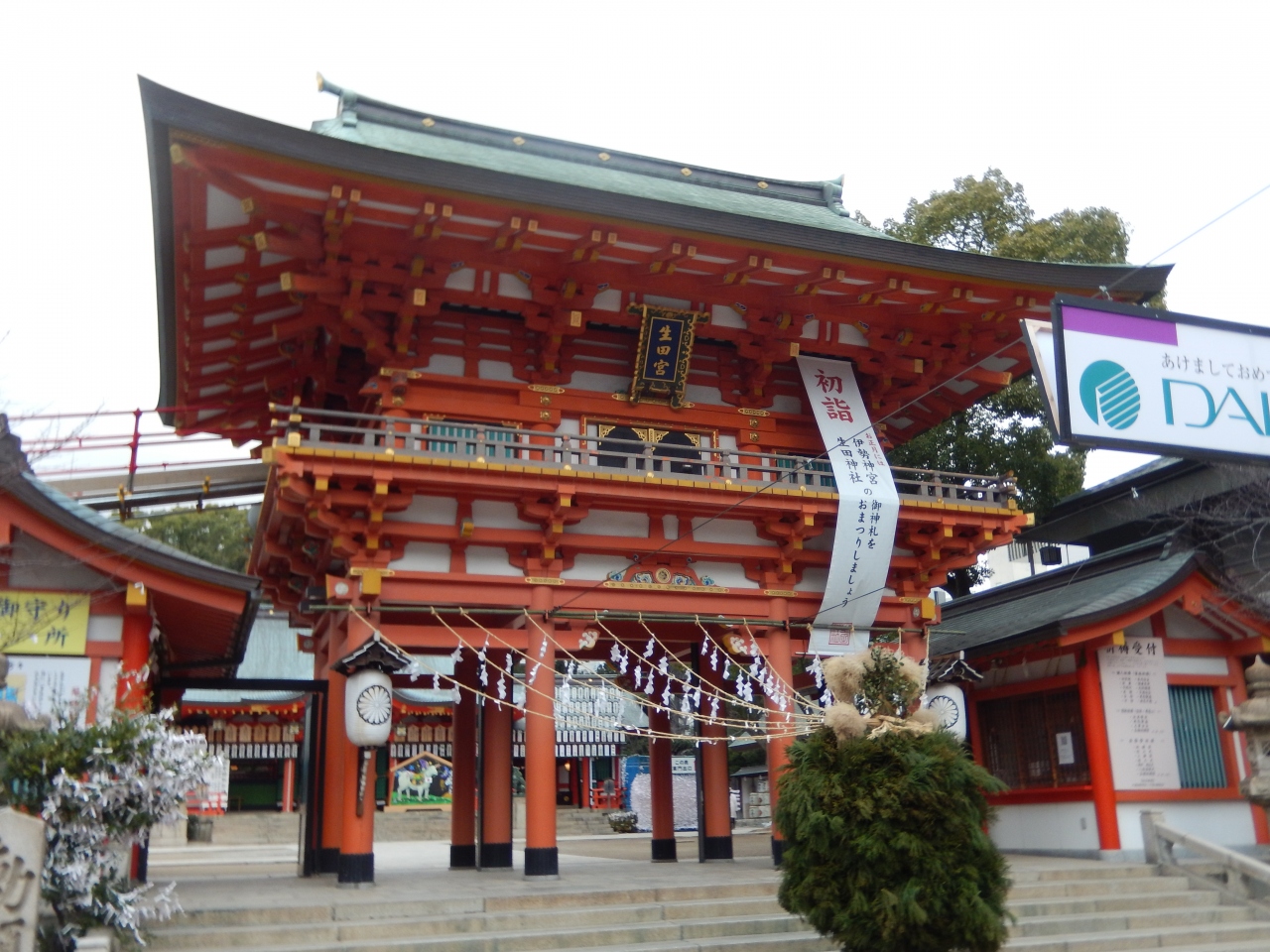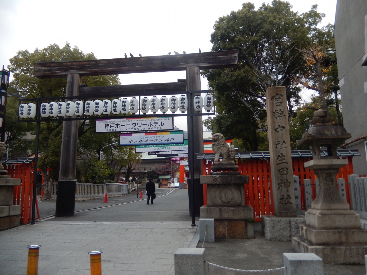 神戸三宮にある歴史ある神社で創建は神功皇后元年(西暦201年)と日本書紀に記されているようです、祭神は雅日女尊、お正月の初詣など祭事・年中行事には多くの参拝者で賑わいます、境内には松尾神社・大海神社・稲荷社・戸隠社・蛭子社・弁天社などの末社が多くあります、神社本殿奥は生田の森になっています。