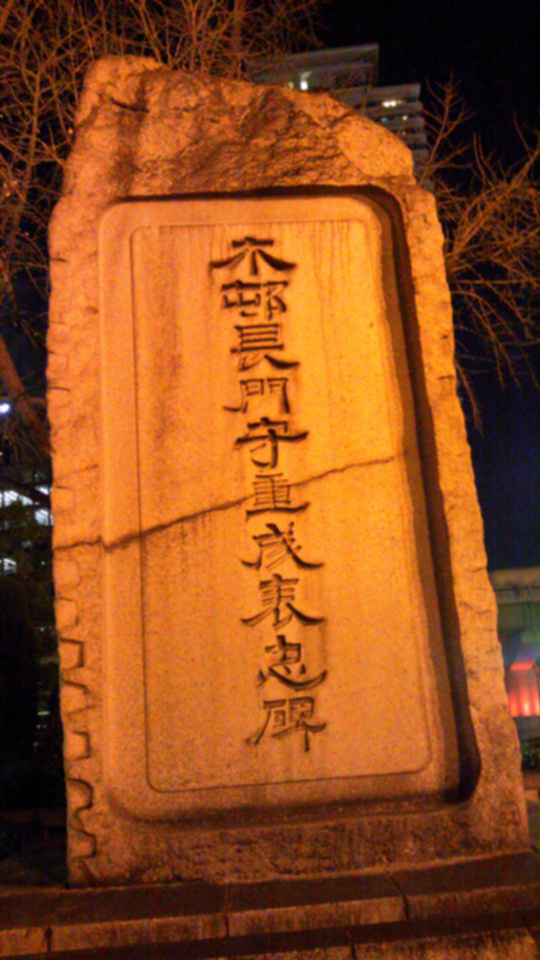 大阪冬の陣で大活躍した武将、木村重成の忠節を称える碑です。