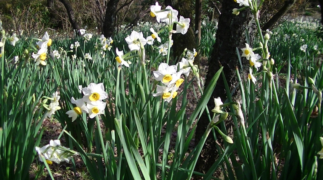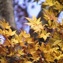 園内には梅林があるので、梅の時期が最高でしょうが、花の少ない冬でも、水仙が良い香りを発しています。また、何と迎春準備をしている年末でも、黄葉している紅葉(もみじ)を見つけました。黄色い紅葉が冬の寒空に綺麗でした。