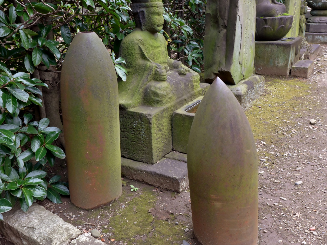 境内の一角に戦争中に落とされた爆弾か砲弾と思われるものが置かれていました。