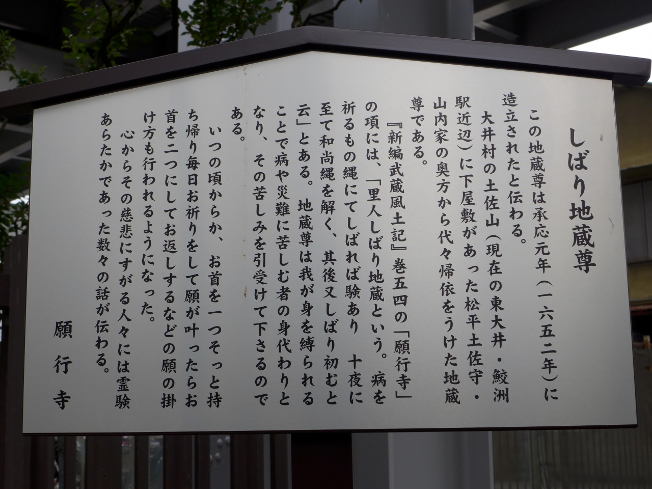 地蔵堂には承応元年に造られたという「しばり地蔵尊」が安置されています。ちょうどお腹の辺りに縄が何重にも巻かれていました。