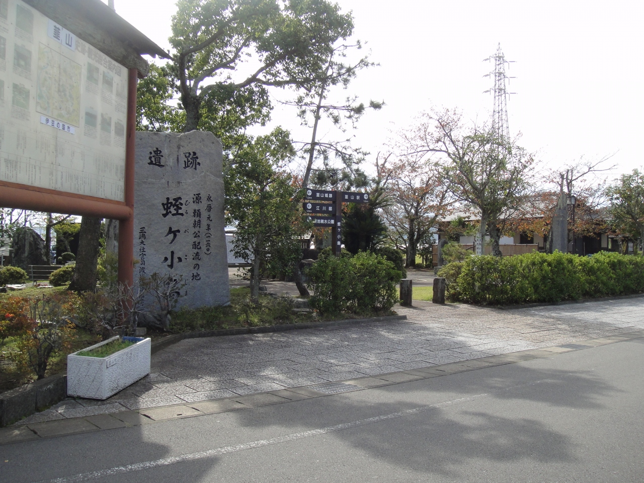 伊豆に流された源頼朝が過ごしたとされる場所に“蛭島碑”が立っていて、かつてここが歴史の舞台だったことがわかります。公園の入口には源頼朝と北条政子の銅像が立っています。公園内には軽食もいただける休憩所もあり、のどかでくつろげます。