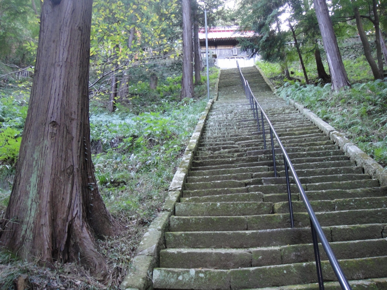源氏の氏神八幡神を祀った神社です。神社の入口には、ここで源頼朝が平家討伐を祈願したという墓碑があります。石段の先には舞殿があり、さらに奥には目のくらみそうな急な石段があって、その上に本殿があります。森の中にある静かな神社です。