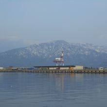 日本海にしては穏やかな海に雪山の景色が気持ちよく