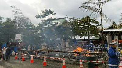 新潟市の市街地の外れにある神社ですが、大きな神社なので初詣に行ったらとても混んでいました。神社の本殿に行くまでは屋台がたくさん出ていました。