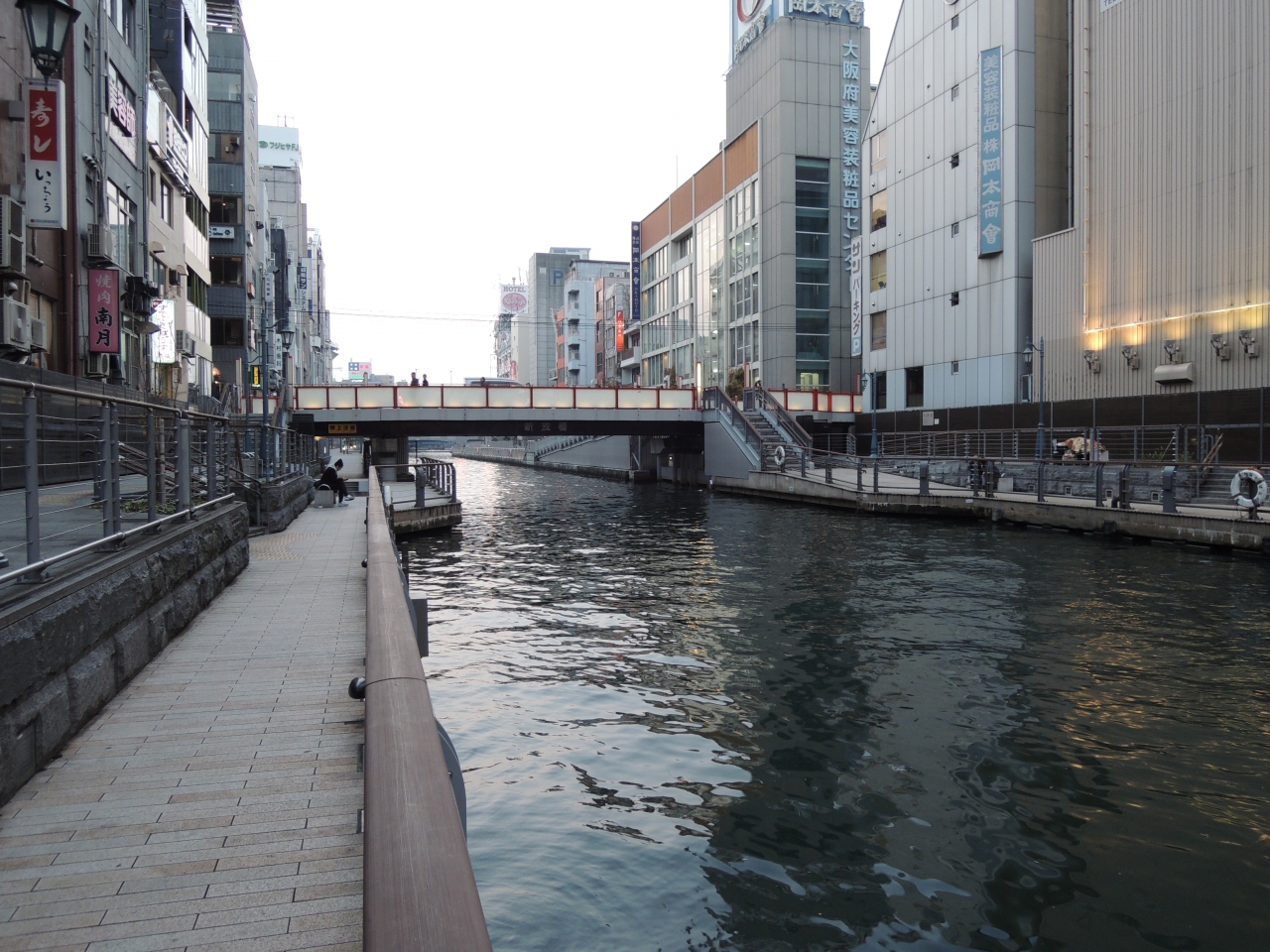 なんばHatchの方へ向かわれるかたはこの道頓堀の遊歩道は空いていて便利ですよ。
