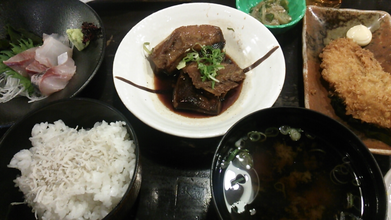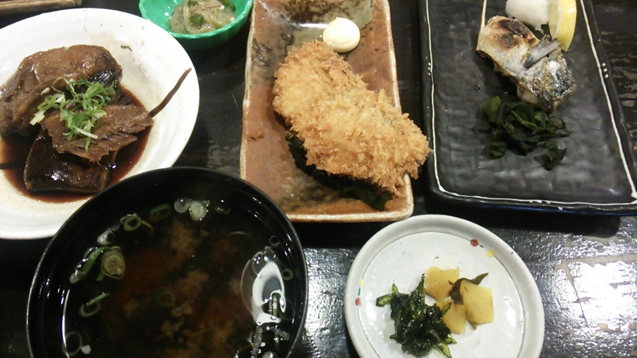 利用したのはお昼の時間帯の為、普通にご飯を食べる為に利用しました。なお頂いたのは1食1500円する「島根定食」で、その日はじゃこ入りのご飯(店主からダシ醤油をかけて食べるよう勧められた)、味噌汁の他、刺身(魚名不明)、魚の煮付け(こちらも魚名不明)、鯖の塩焼き、鰆のフライ、小鉢(イカともずくの和え物)という内容でした!1品自体の量は少ないもののいろんなおかずがついてくるので、いろんなものを楽しみたい方にはよいと思います。