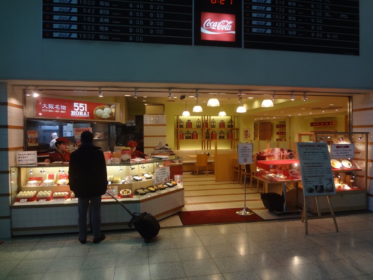 早朝のANA便にて大阪着。ゲートを出るとすぐ右手に蓬莱が。普段は利用しないのですが、モーニングをやっていたのでついつい入店しました。セットはAからCまでの3種類。無難なのは豚まんとミニラーメンのAセット。でもドリンクは別となっておりプラス100円でした。通常ドリンクのみだと400円なので、かなり安くなっていますがモーニングセットなのに別料金とは。食事の味は良かったですが。