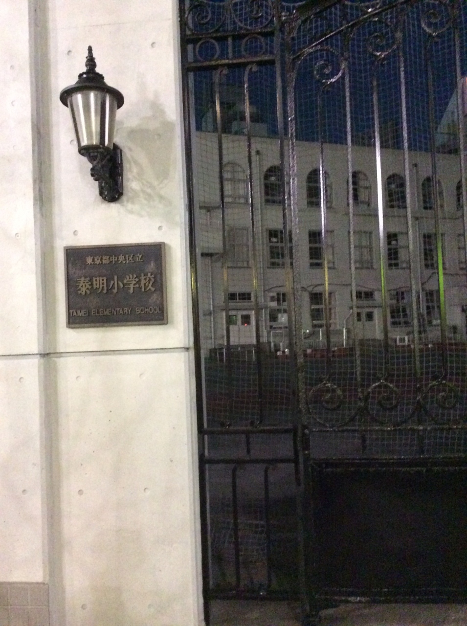 数寄屋橋公園隣の、明治11年に創立された中央区立小学校です。関東大震災の復興小学校で、東京都選定歴史的建造物及び経済産業省近代化産業遺産に指定されていて、歴史的な建造物としても高く評価されています。フランス門と呼ばれる門扉がお洒落です。