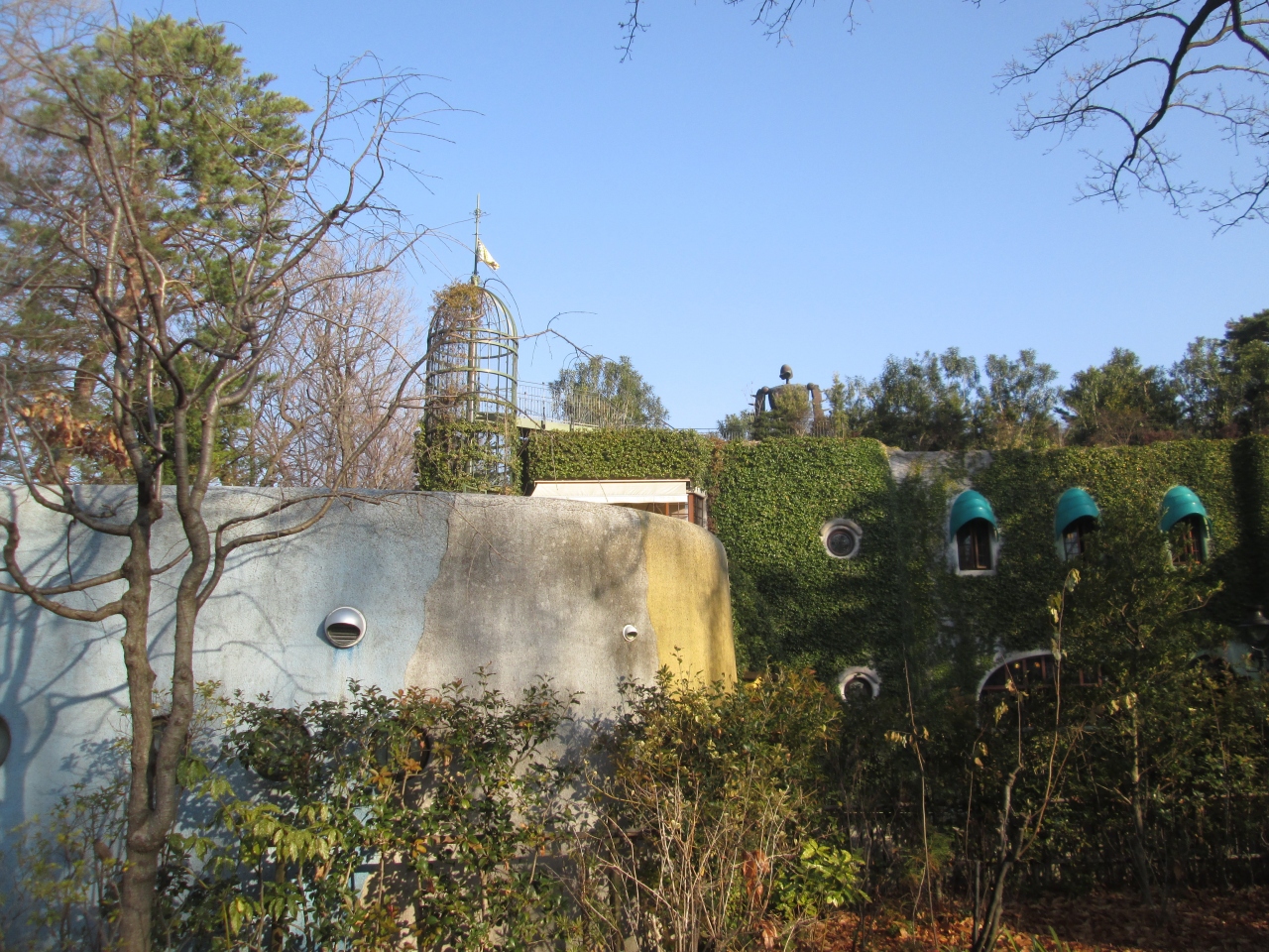 井の頭恩賜公園に訪問した際にジブリ美術館を見学に行きました。この日の入場券も完全予約制で完売のようでした。熱心な人は朝早くから並んでいるようでいまだに人気が衰えない美術館です。外観だけでも雰囲気を楽しめました。