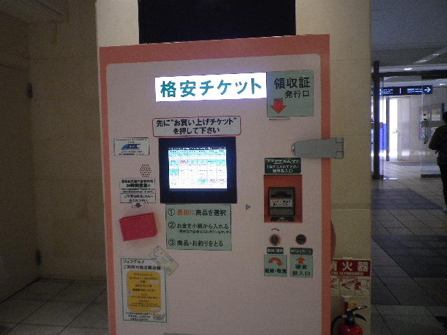 必要な時には見つからず、ぶらぶら歩いている時に見つかるのが、金券ショップ。大阪だと新幹線の割引券の自動販売機を良く見かけますが、関東ではあまり見かけません。ポルタB1の回転寿司店まぐろ善の前に自動販売機がポツンとありました。