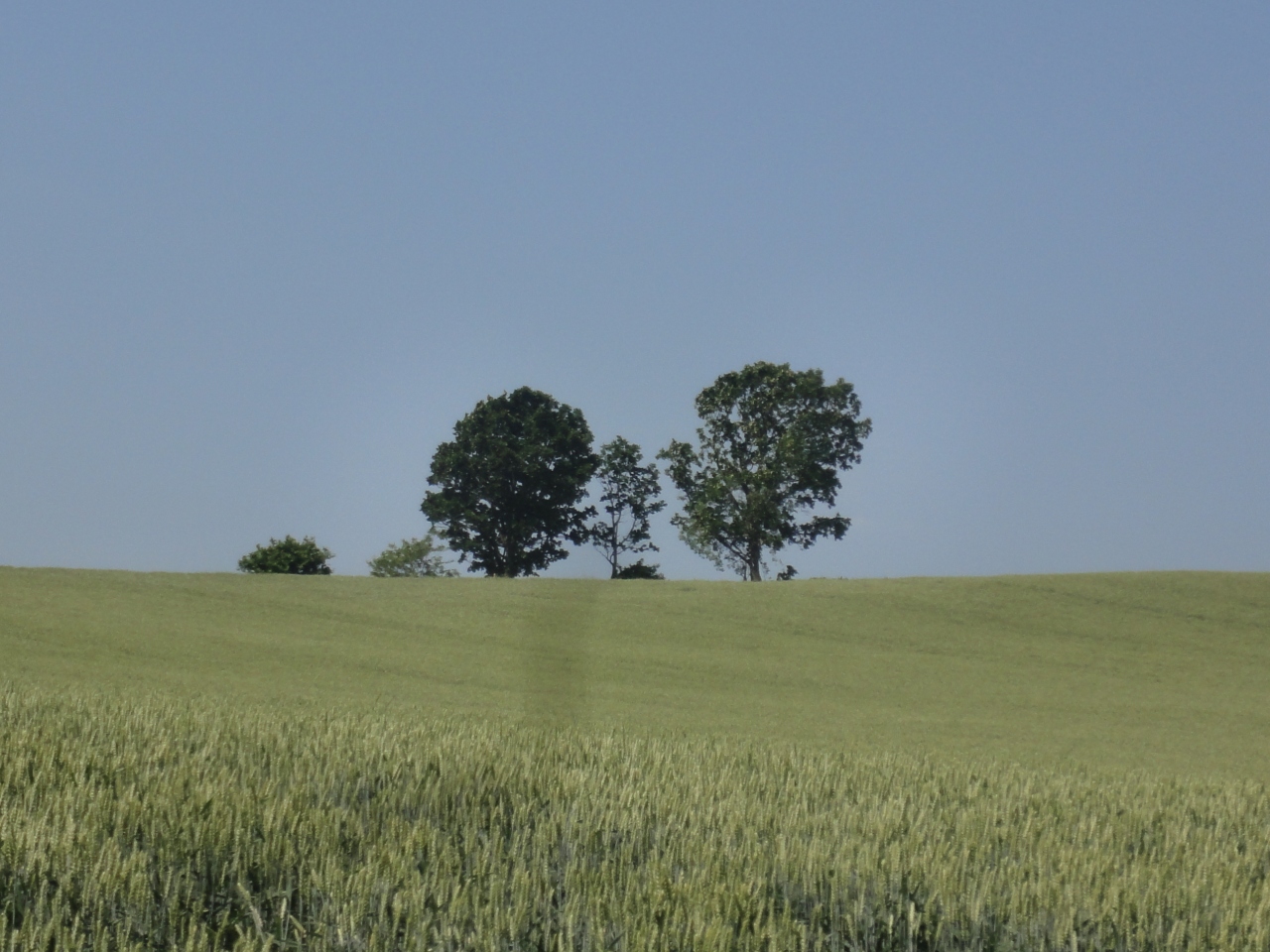 3本の木が親子のように寄りそっていることから名づけられたスポットです。他の美瑛の著名な木や丘と同じく、畑の中の道路の脇にあり、案内看板も小さいので見落としてしまいがち…。(私たちも他の車が止まっていて写真をとっていたので気付きました。)