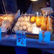 一応イートインスペースもありますが、串にさしてくれているので、食べ歩きで利用しています。