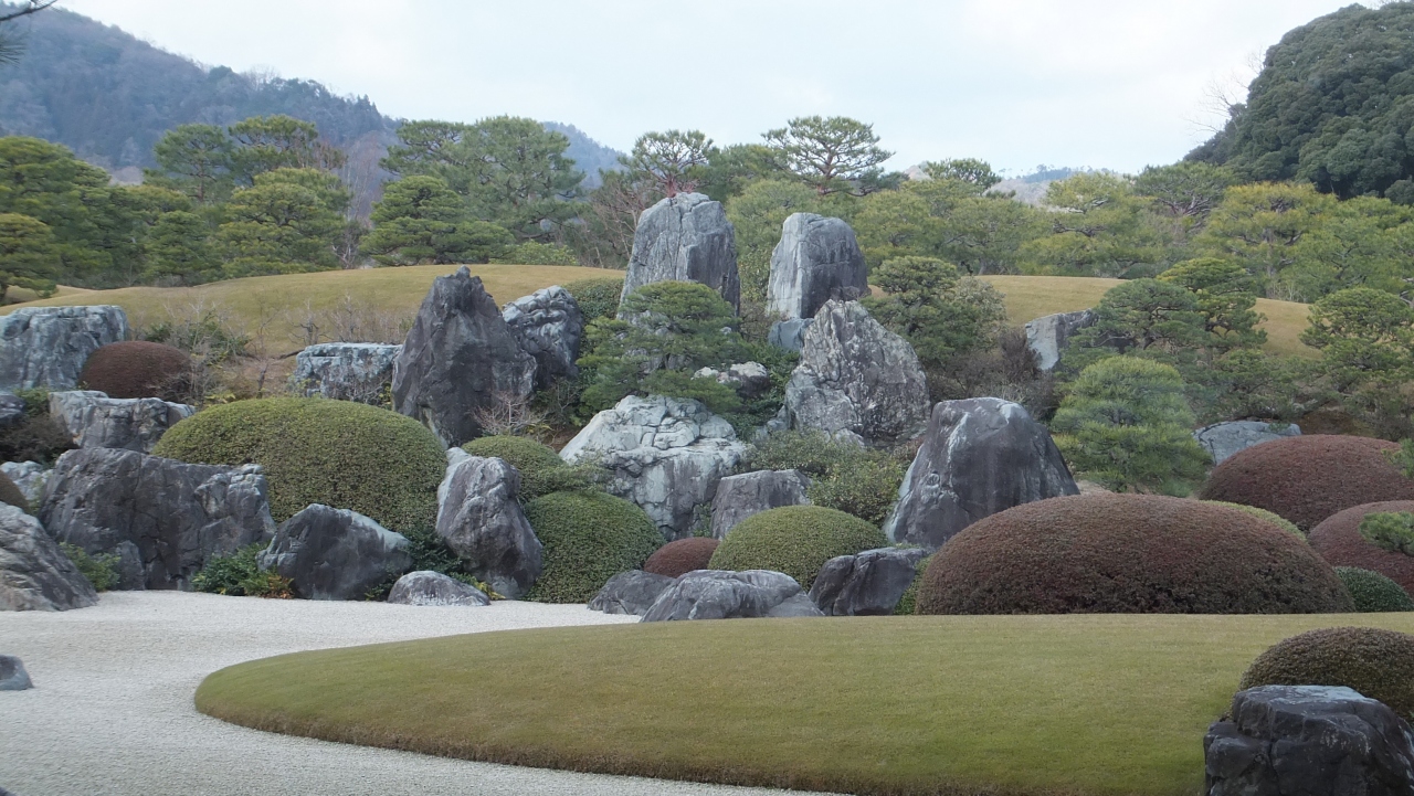 足立美術館に幾つかある喫茶の一つですが、席から「枯山水庭」の絶景が目の前に広がります。