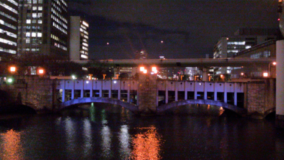 コンクリートのアーチが素敵なので、ぜひ一本離れて、肥後橋から見てみて下さい。