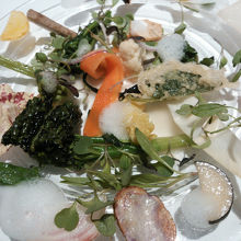汐留パークホテル内にビストロです。最近多い写真NGのレストランとは違って、スタッフも気さく、こじんまりした店内は古いフィルムが流れていたりして、一人でも気兼ねなく入れそうです。リラックスできるので、思わずおしゃべりに夢中になってしまいますが、お料理はタテルヨシノの系列だけあって美味しいです。特にモネの庭園風にアレンジされた温野菜サラダが良かったです。