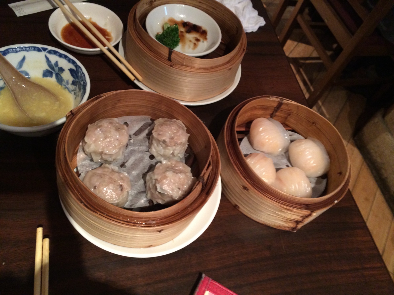 今回は、中華バイキングに行ってきました。予約は受け付けていないとのことで、12時半頃に入店しました。受付で名前を伝えると「待ち時間1時間くらい・・・」と伝えられたため、近所のお店を覗いて時間を潰し、1時間後お店に戻ると、まもなく名前を呼ばれました。案内された2階フロアは、中央に飲み物やご飯ものやゼリー系のデザートが置かれ、その周りを客席が取り巻くように配置されてました。テーブルで点心類を好きなだけオーダーできるシステムで、写真入りの大きなメニューを見て希望の点心の番号をスタッフに伝えると、熱々の点心が運ばれてきました。全メニューを食べることは出来なかったけど、とても美味しく、本格的で大満足でした。フロアスタッフは、あまり愛想は無く、笑顔も無かったと思います。たぶん、日本人ぢゃないかもぉ。。。それは、それで、中国っぽくて良かったです。受付のスタッフや1階のお土産屋さんのスタッフは、みなさんとても親切で丁寧な対応でした。海外の中華街で食べる飲茶のようでした。