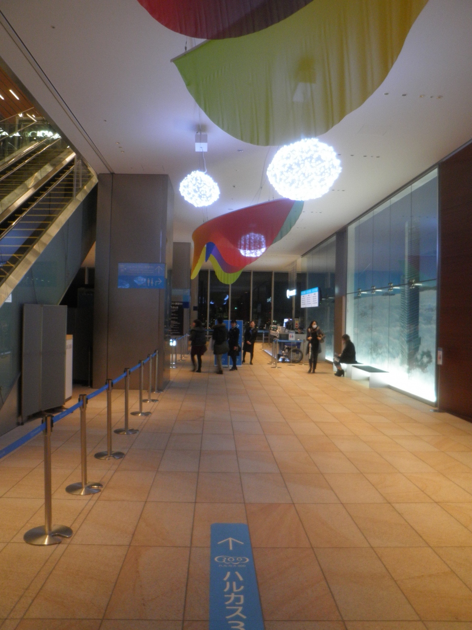 大阪の新名所として話題になったころから、だいぶ年月がたったので行ってみました。 平日の夜でしたが、とくに混雑もなくスイスイ展望スペースに行けました。 やはり高さがあるので、夜景の眺望は迫力ありました。 内部の装飾も雲や青空をイメージしていていい感じでした。ビリケンさんならぬ大きな青いくまさんがマスコットとして置かれていました。