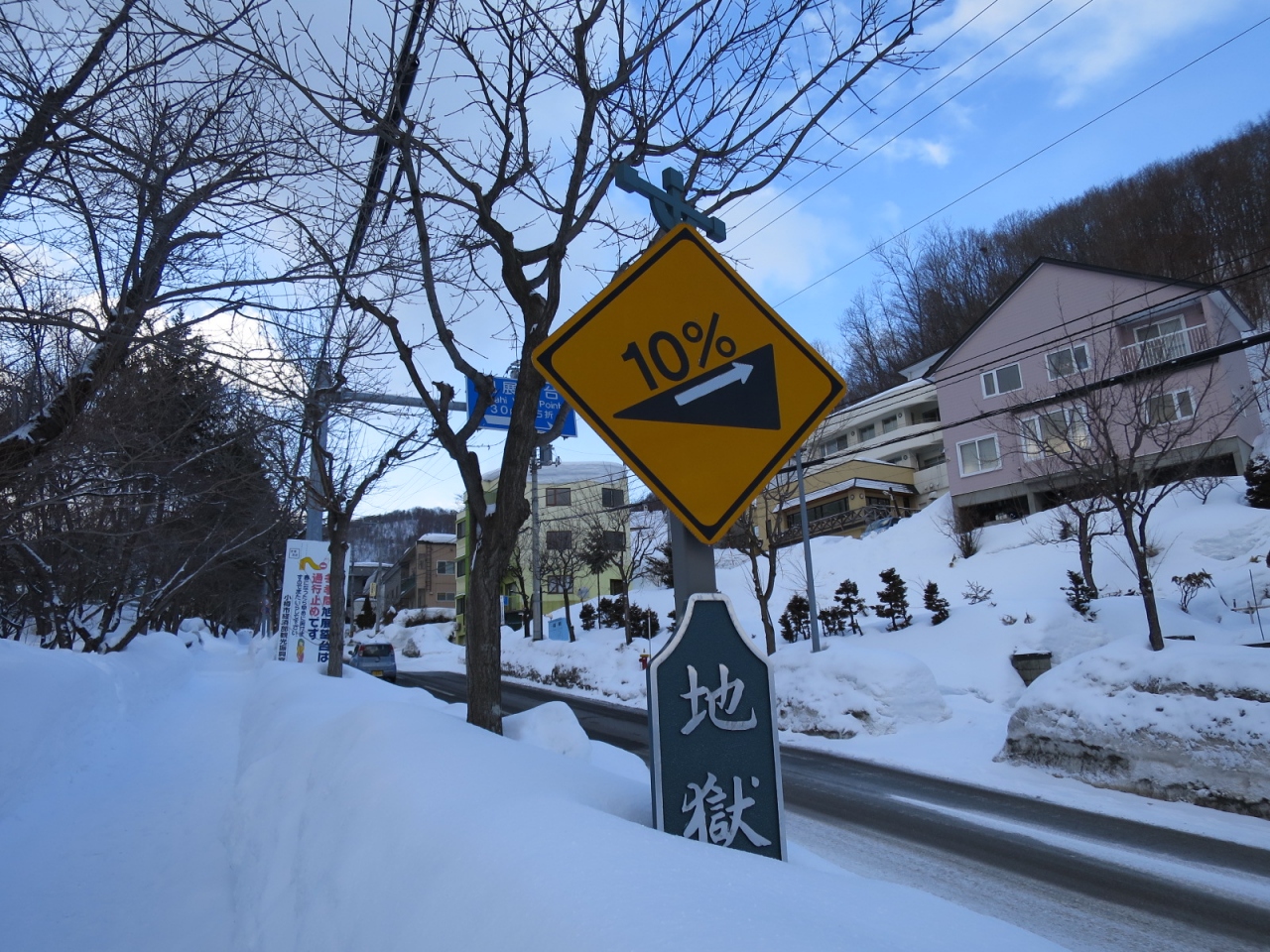 今では、一部ロードヒーティングが効いたり、バスが出ていたりと、地獄ではなくなった坂です。