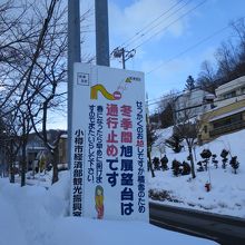坂の途中には旭展望台(標高190m)に行く道もあります。ただ、冬は閉鎖されているとのことです。