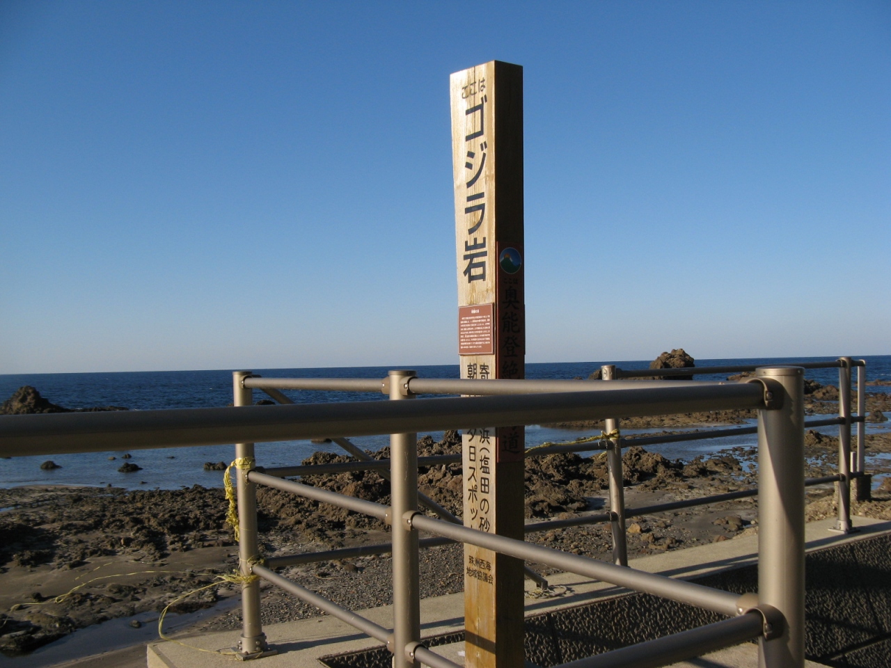 これまで日本各地を旅行して、男鹿半島や知床半島などの“ゴジラ岩”と名のつく岩を見てきましたが、これらに比べると少し小さいです。