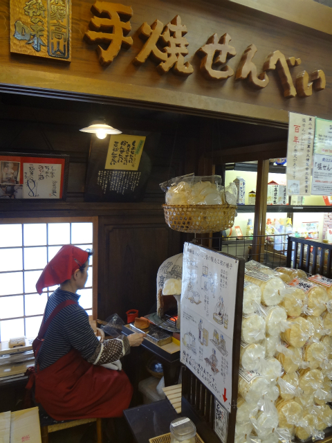 店の中で一枚一枚丁寧におせんべいを焼いていて、焼きたてを試食もさせてくれます。
