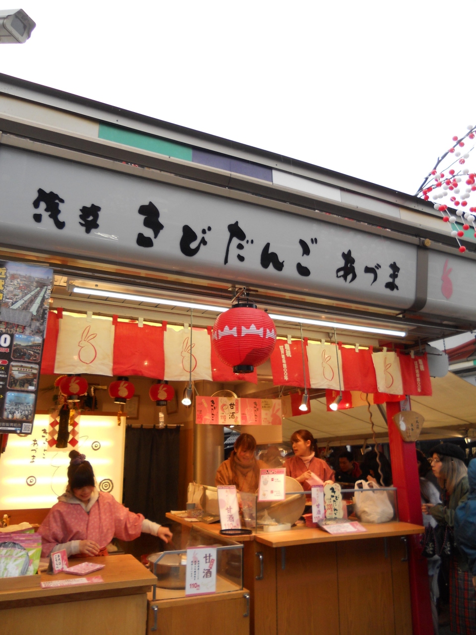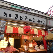 浅草の雷門から入り、「仲見世通り」を進むと左側4店舗目のきびだんごのお店です。店頭で実演販売がされているので、活気があって明るい店舗です。できたてのきびだんごは5本で300円と大変リーズナブルです。久々にきびだんごをいただきましたが、とっても美味しかったです。