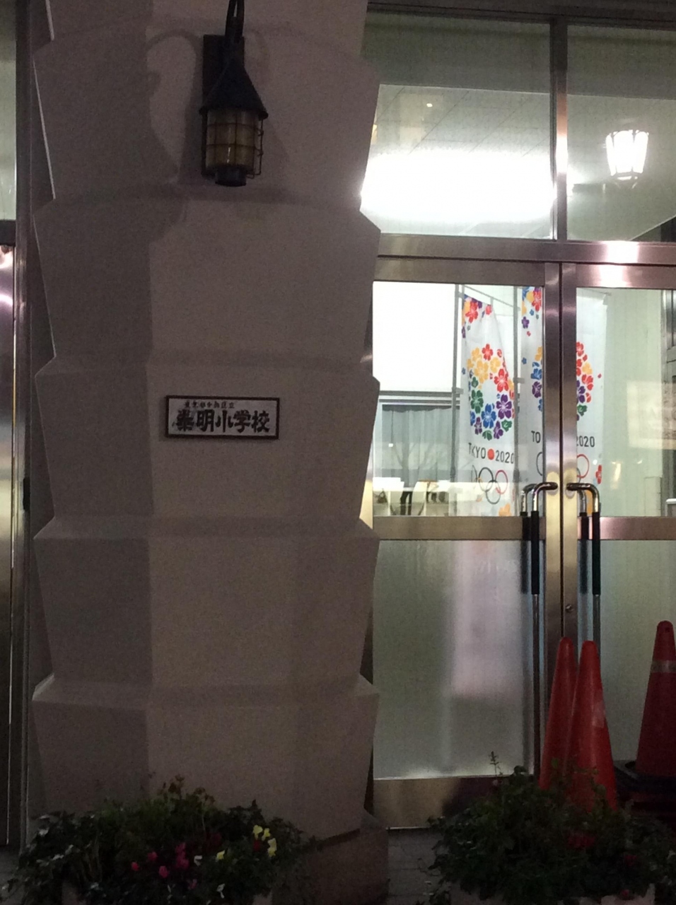 数寄屋橋公園のすぐ隣にあります。1878年創立の歴史ある小学校で幼稚園も併設されています。関東大震災後にいわゆる復興小学校として鉄筋コンクリート3階建ての校舎として再建されました。卒業生に島崎藤村がいます。