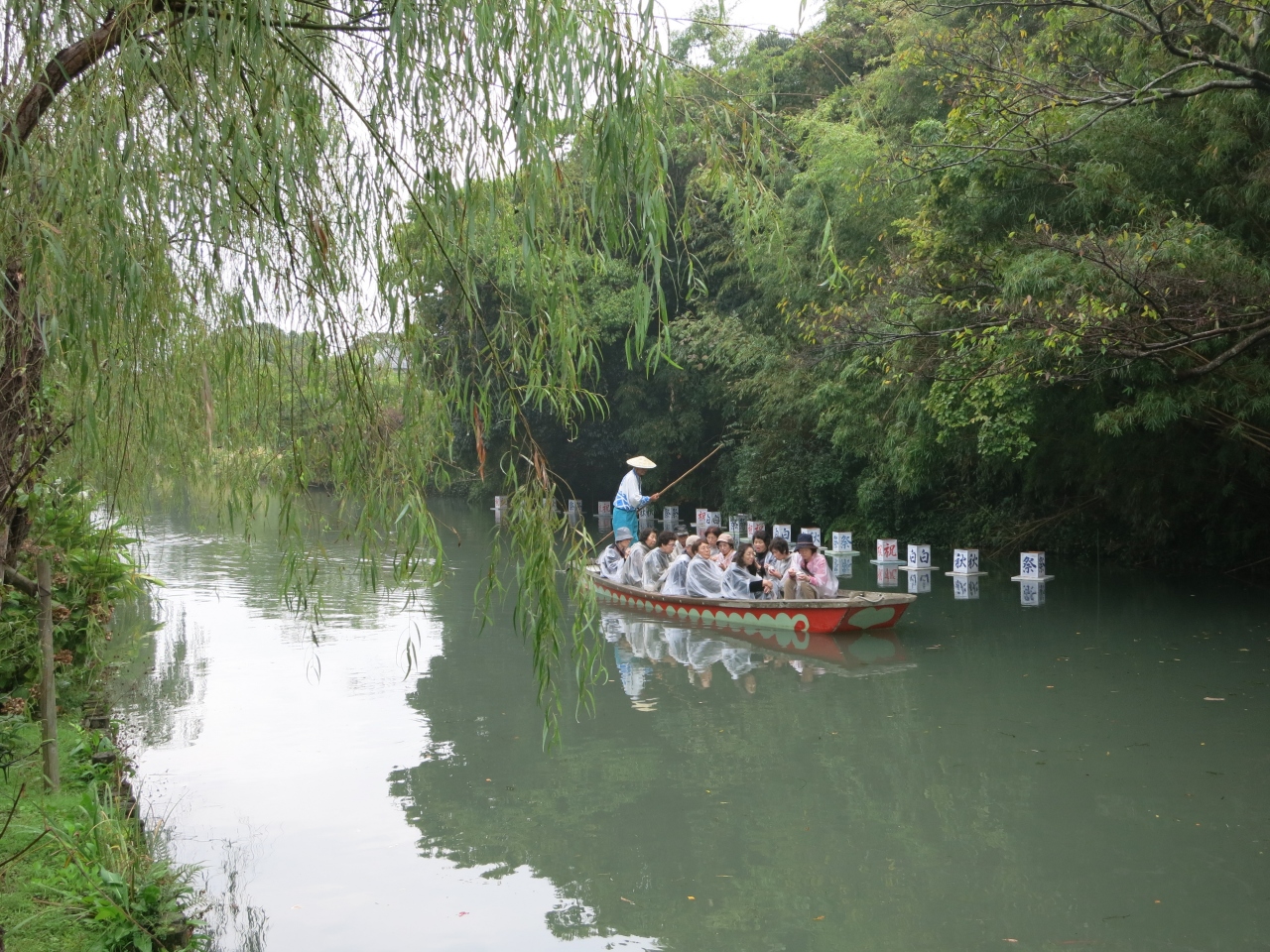 訪れた日は雨が降ったり止んだりと安定しない日で、川下りをするかどうか迷いました。川下りの船には屋根はなく、合羽を着て(貸してくれる様ですが)乗らなければなりません。結局合羽を着ても濡れるので水郷沿いの散歩道を歩くことにして船では乗りませんでした。