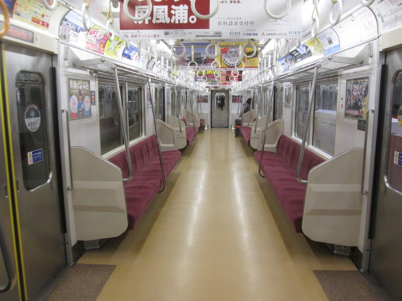 羽田空港国際線ターミナルに22時頃に到着する京急空港線の電車に乗車しました。国内線の出発はほとんど終了する時間帯で京急蒲田から乗車するお客さんは天空橋駅までに降車し、空港到着時、車内はガラガラでした。
