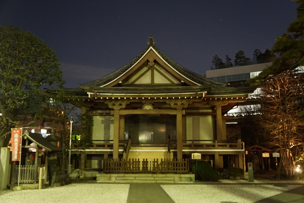 心法寺は、新宿通りから入っていく道のどん詰まりにあるのですが、その200mくらいの道がとても広くて、新宿通りからでも寺の本堂がよく見えます。