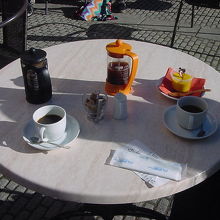 おしゃれなリゾートホテル「リゾナーレ八ヶ岳」に隣接するピーマン通りにあるコーヒーショップ。軽井沢に本店のある有名店で、一度飲んでみたいと思っていました。店舗は小さいですが、天気のいいときは店頭のテラス席が本当に一等地。店員さんが持ってきてくれるので安心。コーヒーはポットサービス。2杯分はありました。