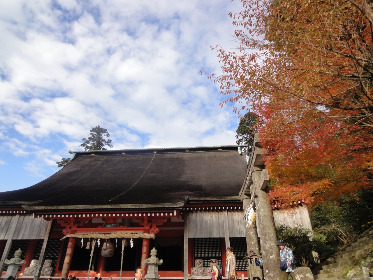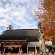 英彦山神宮奉幣殿と青空と紅葉のコントラスが綺麗でした。
