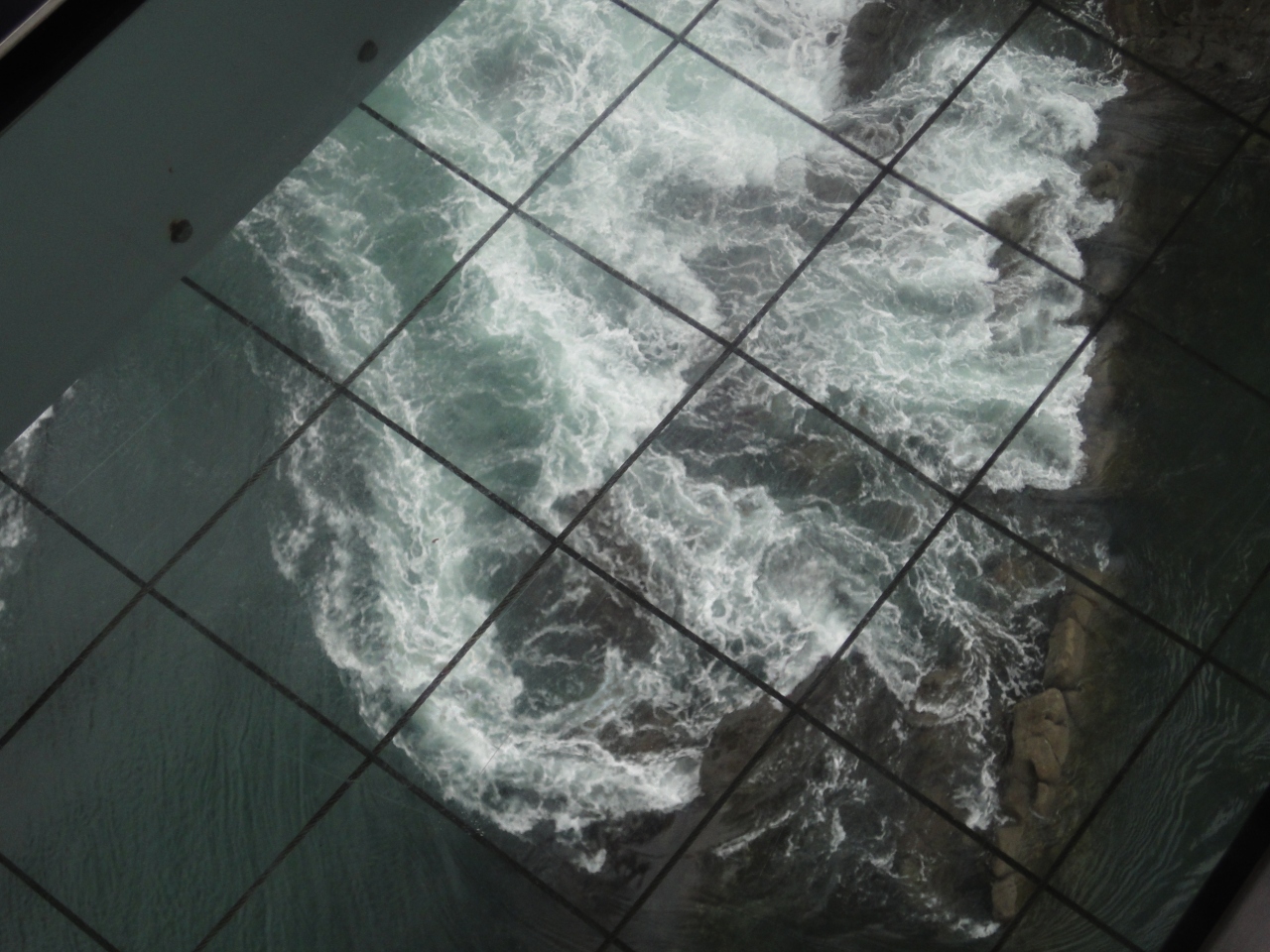 私は渦の道の展望室から鳴門海峡の渦潮を見ました。